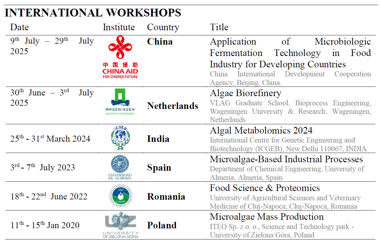 | 15-19 Sep, 2022 | Life Sciences for Sustainable Development: International Conference, University of Agricultural Sciences and Veterinary Medicine of Cluj-Napoca. Cluj-Napoca, Romania Sara Saad, Mervat Hosny, Heshmat Soliman Aldesuquy, Eladl Eltanahy (2022). Microalgae as Human food and animal feed: Challenges and perspectives |